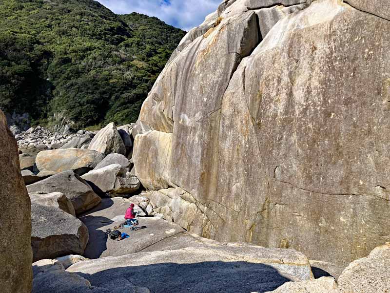 今回で2度目の訪問となった大堂海岸ですが、冬にフリークライミングをするなら、やはり南国のシークリフは良いですね。太平洋の大海原を背に、眩い花崗岩の岩壁を登るクライミングは、山間部でのクライミングとはまた違った趣があり開放感があります。もう、気分は最高でした!