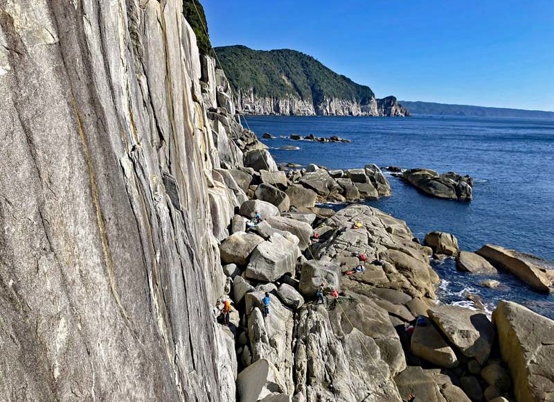 このエリアの大きな魅力は、残置物が一切ないことです。終了点はもちろん、トップロープ課題であってもすべて自分で構築する必要があります。「セットできるところにはボルトを打たない」という、フリークライミングの原点を大切にしていることこそが、大堂海岸ならではの魅力だと感じました。